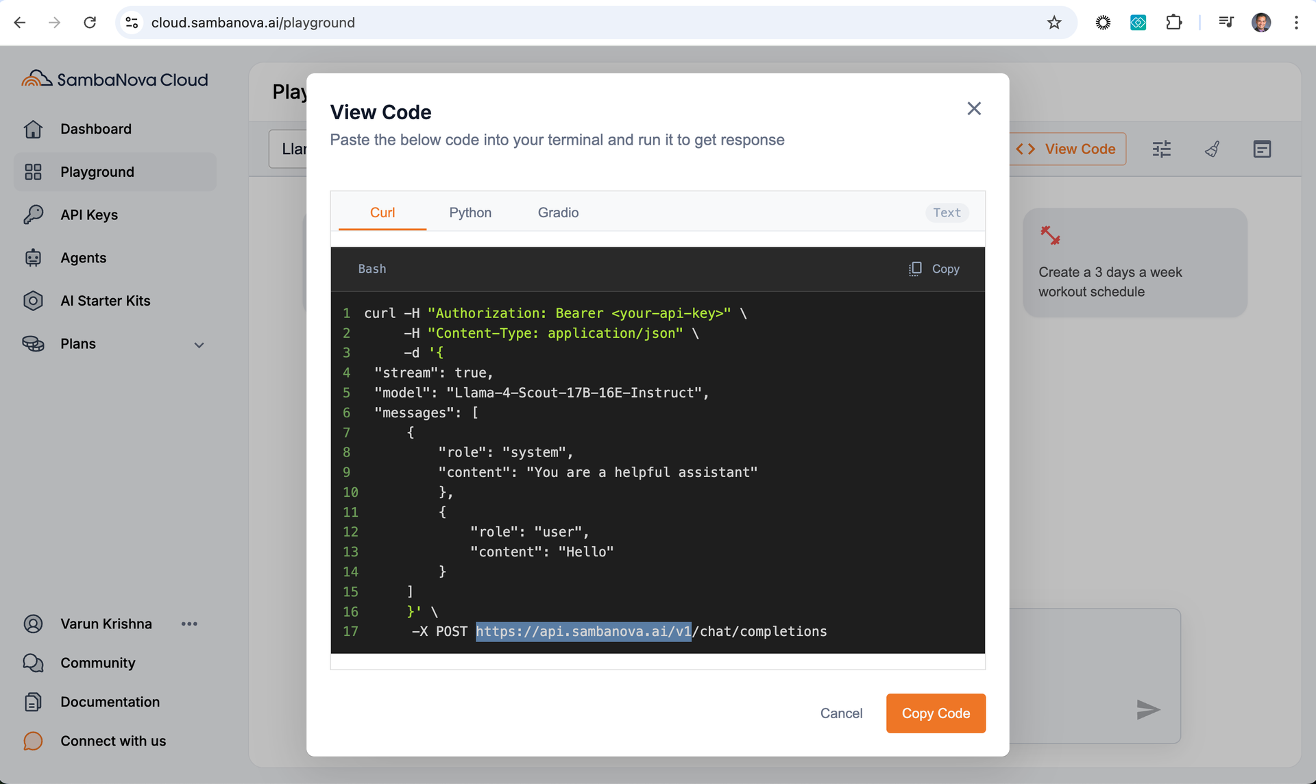 - Select View Code in the top-right to get your model endpoint URL and model name.