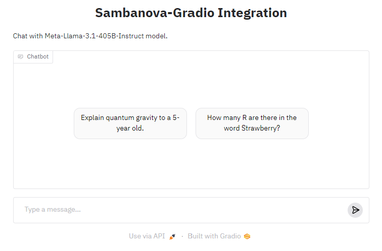 Running this Python script will launch a Gradio interface connected to the Meta-Llama-3.3-70B-Instruct model.